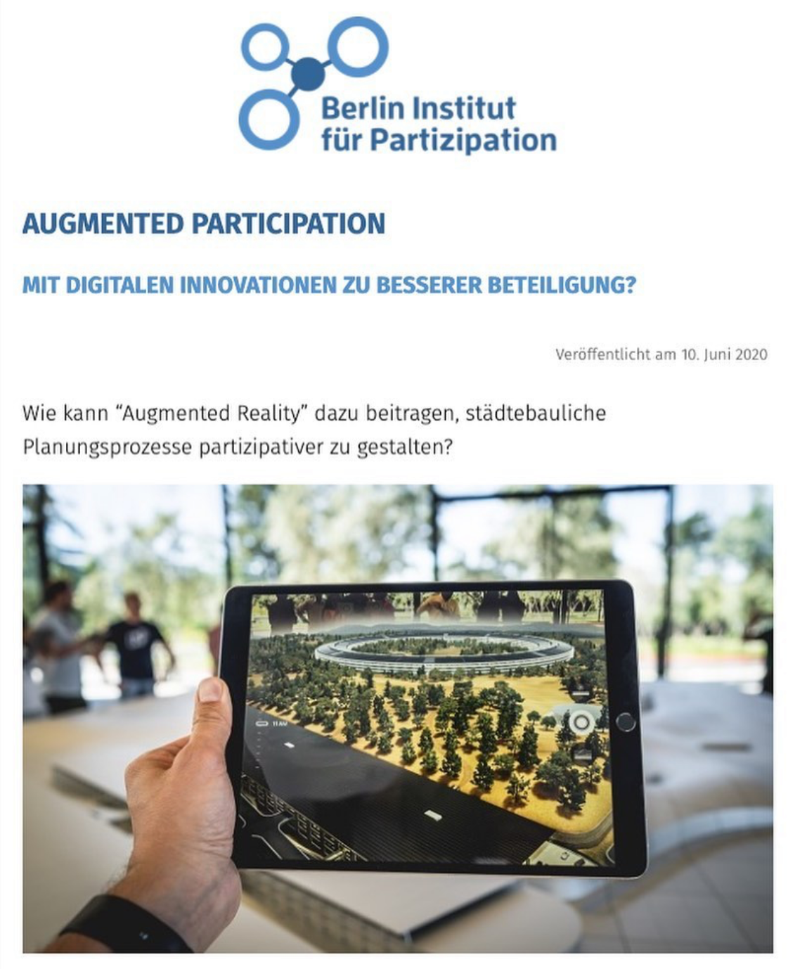 June 2020 | Publication at PAGE 07.2020 about »Augmented Participation«. https://page-online.de/branche-karriere/stadtentwicklung-ar-app-fuer-buergerbeteiligung/