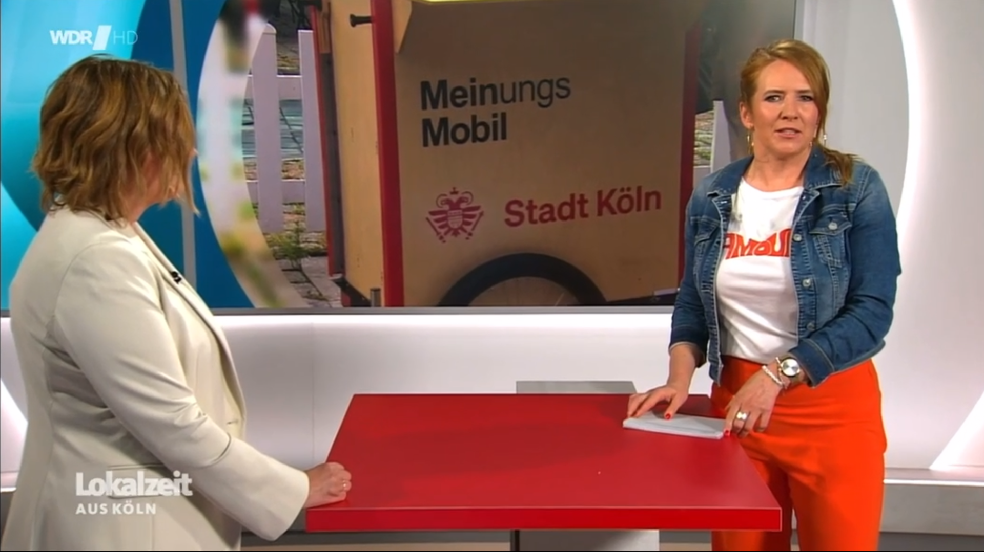 August 2023 | Publication at Kölner Stadtanzeiger and at WDR »Lokalzeit« of MeinungsMobil. https://www.ksta.de/koeln/koeln-stadt-sammelt-ideen-der-buerger-fuer-mehr-sauberkeit-621886